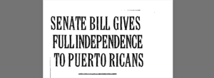 Senator Millard Tydings of Maryland introduced a bill giving independence to Puerto Rico in 1936. The bill was similar to the bill which gave the Philippines independence. It asked for a referendum in Puerto Rico, to take place in 1937, asking the question, “Shall the people of Puerto Rico be sovereign and independent?” This was … Continue reading A Bill for Independence for Puerto Rico