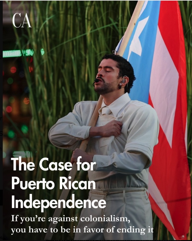 That doesn’t come out of nowhere. Bad Bunny carried a flag symbolizing independence for Puerto Rico. The magazine Current Affairs used that to remind readers of their article arguing for decolonization from last year.