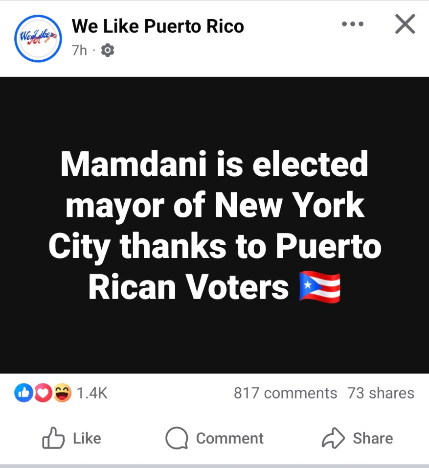 We Like Puerto Rico made a bold claim at their Facebook wall: “Mamdani is elected mayor of New York City thanks to Puerto Rican voters.” Is that true? Two mayors of Puerto Rican heritage were also elected this week — was that also thanks to Puerto Rican voters? In fact, do puerto Rican voters matter?