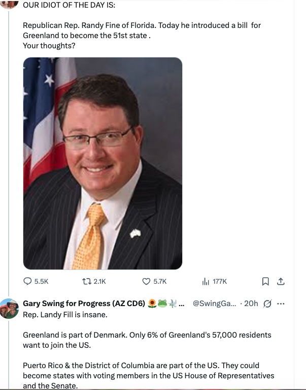 Now, however, it has been nearly 70 years since the United States added a state. We’re out of practice. We don’t even seem to remember how it’s done. Rep. Randy Fine has introduced a bill “To authorize the annexation and subsequent admission to statehood of Greenland, and for other purposes.”